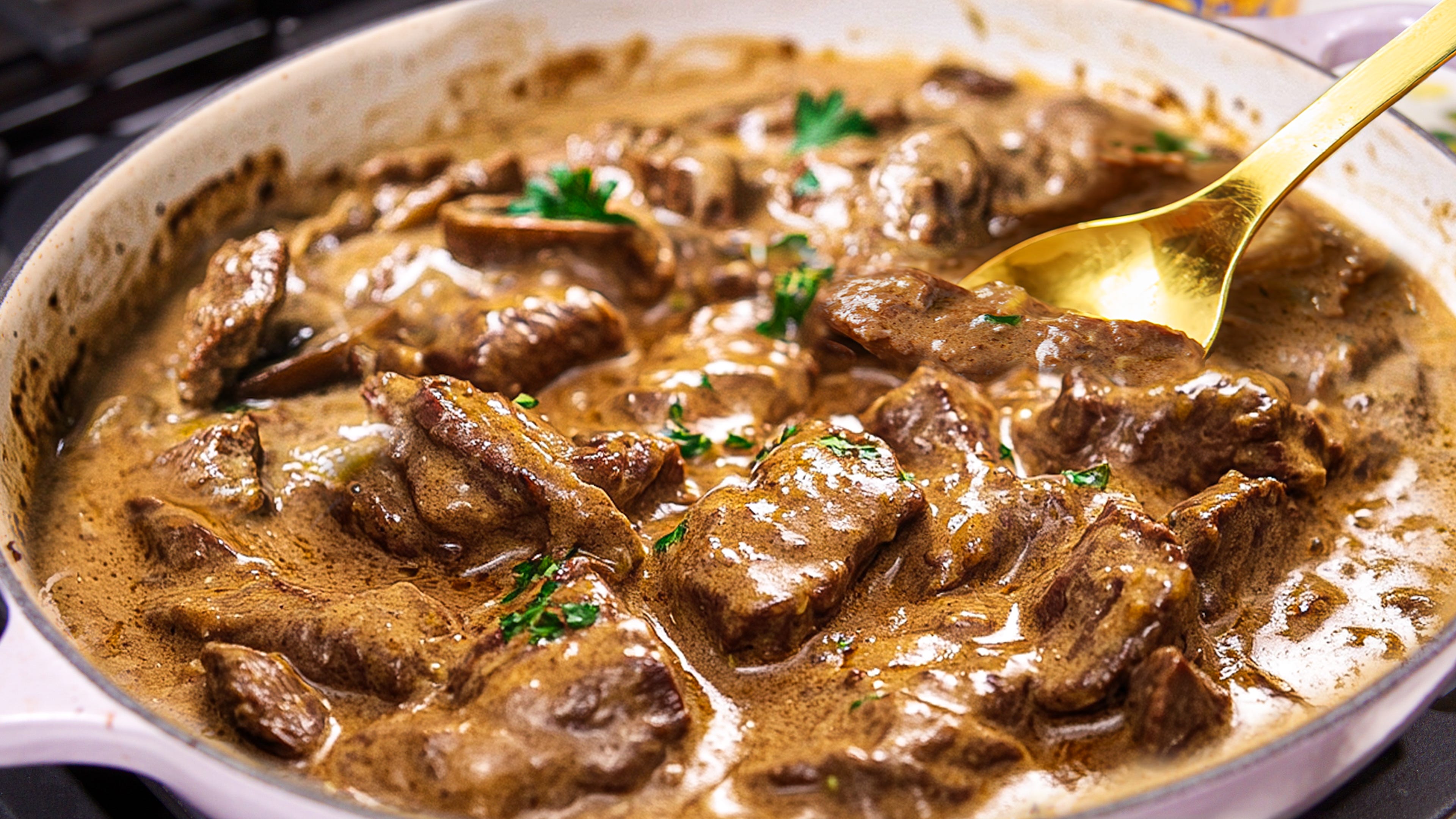 Tender strips of beef in a creamy, savory sauce with mushrooms—perfect for cozy nights.