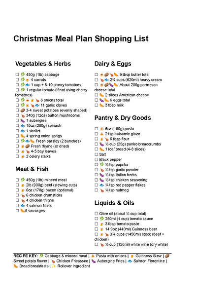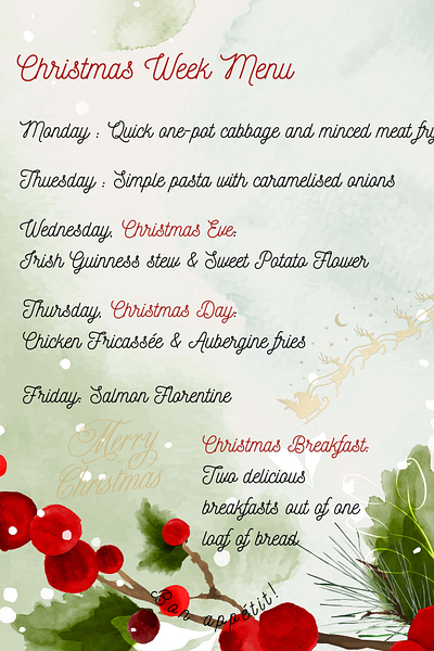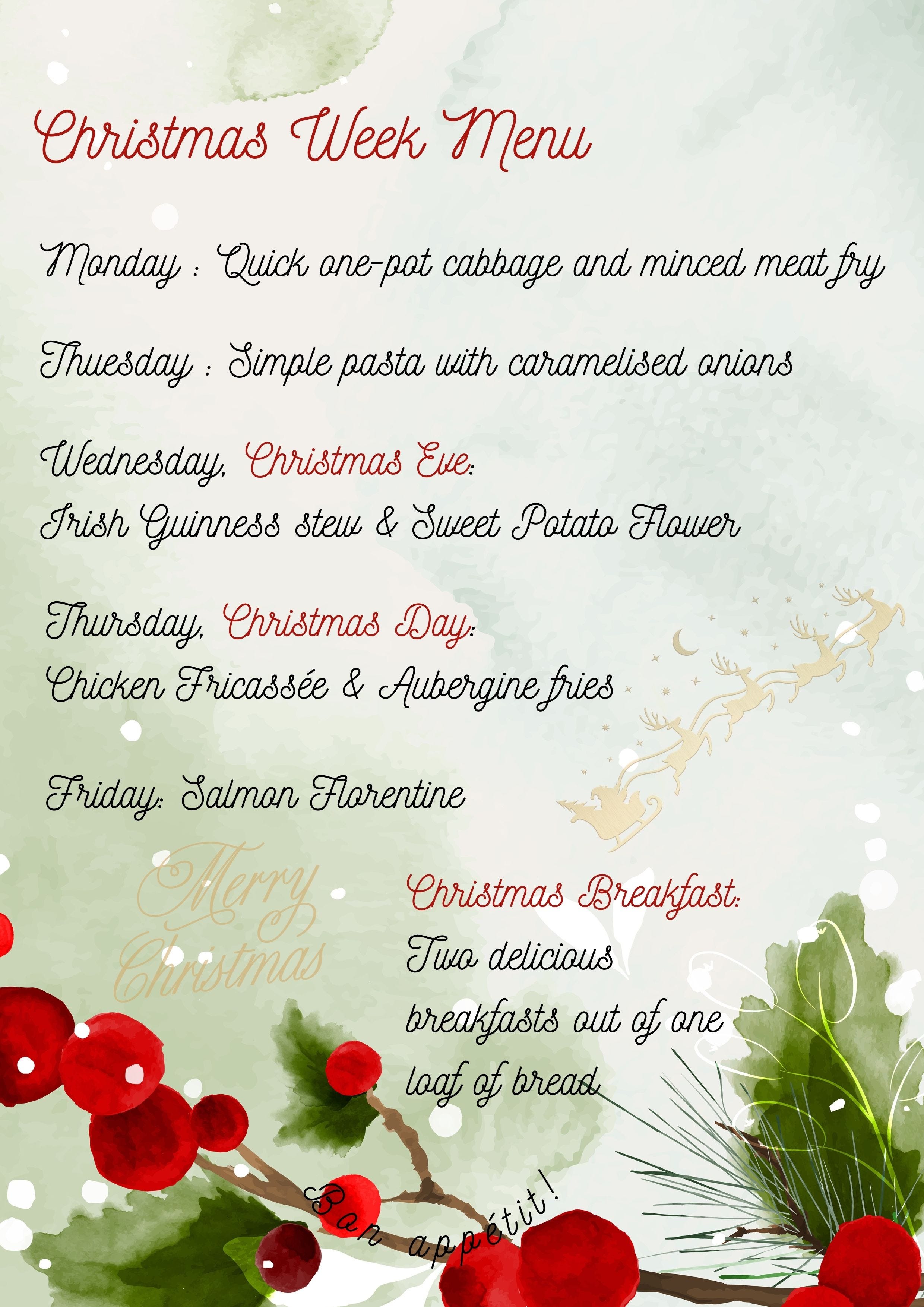 Your Christmas week dinners, with a printable menu and shopping list inside.