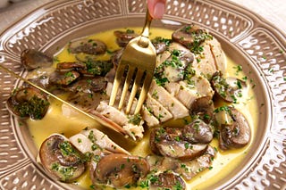 Easy, Healthy and Juicy Poached Chicken with Mushroom Ragout